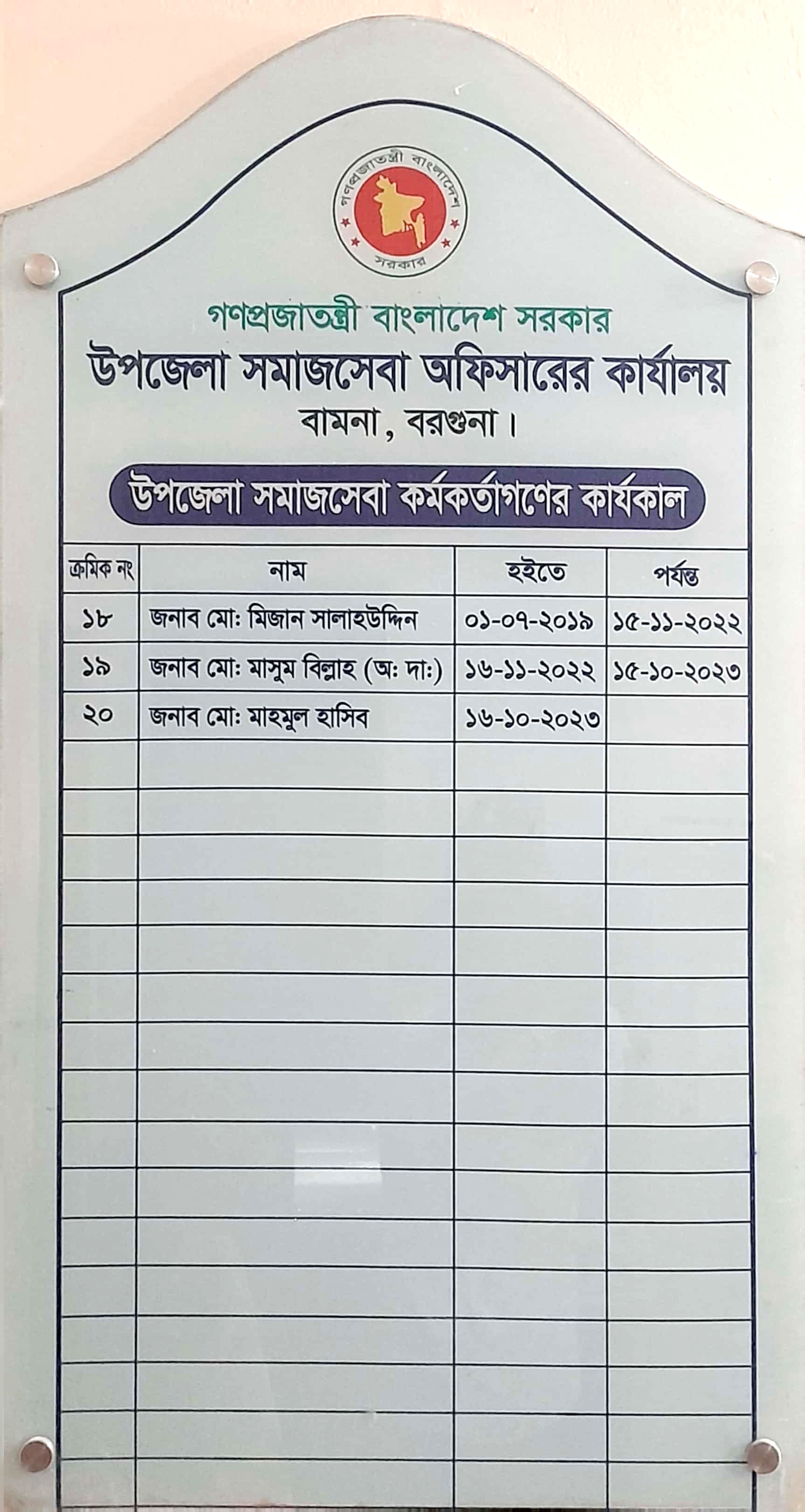 | ২০ | জনাব মোঃ মাহমুল হাসিব | ১৬-১০-২০২৩ | | বামনা | ০১৭২৩৫৪৫৬১৪ | |